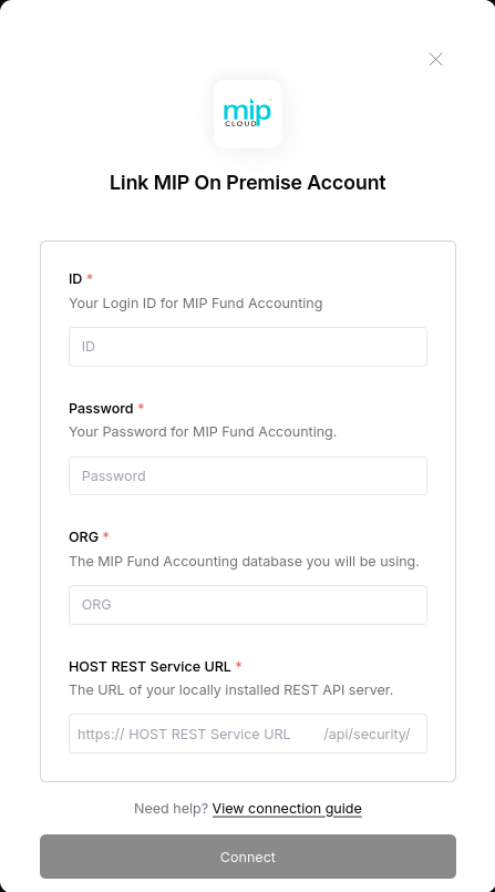 - YOUR_ID - Your login ID for MIP Fund Accounting.