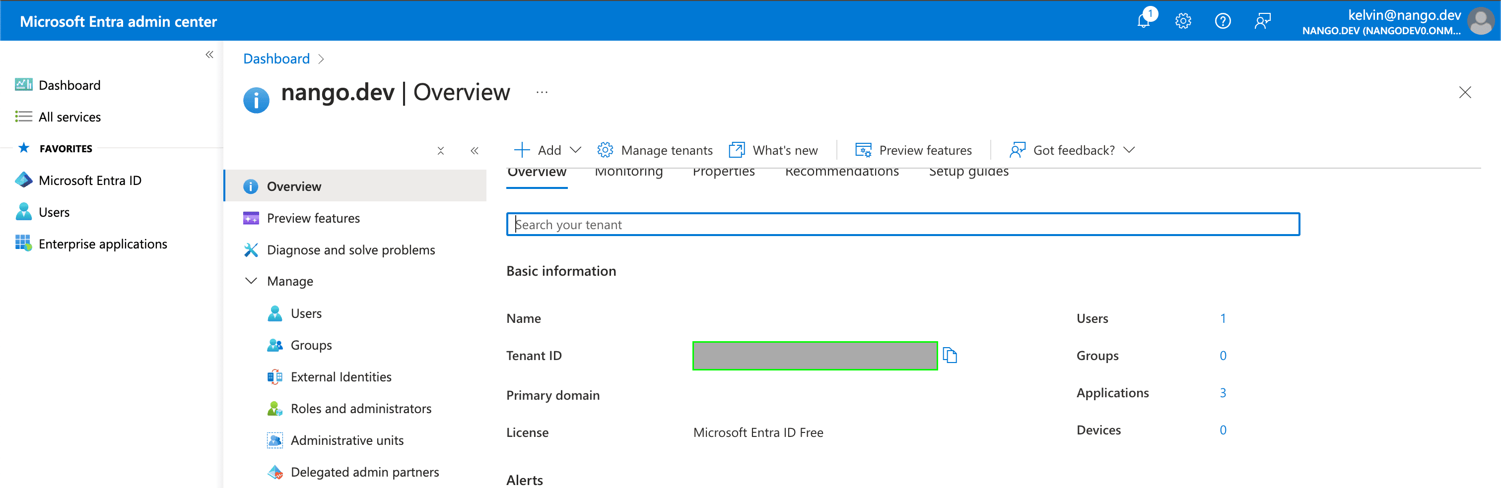 - Your Tenant ID can be found in the Tenant ID field on the Overview page within your Azure account.