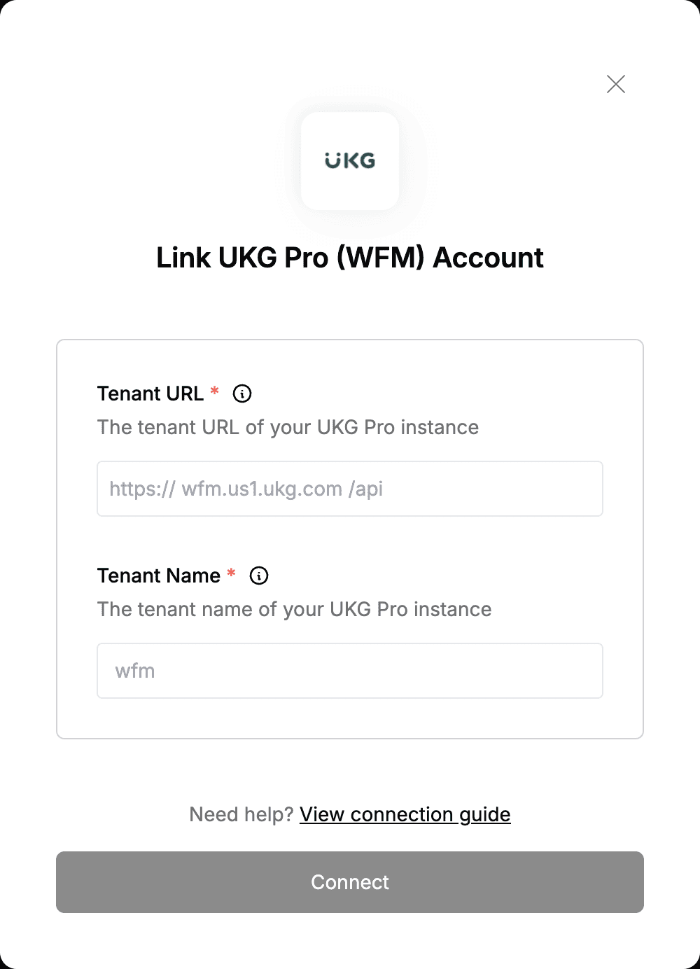 - You must have a provisioned tenant account with UKG Pro (Workforce Management).